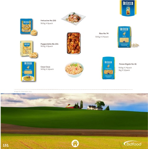Fettucine No 233 500g X 8pack Riso No 74 500g X 24pack Pappardelle No 201 500g X 8pack Penne Rigate No 41 Cous Cous 500g X 24pack 500g X 12pack 1kg X 12pack Image for illustration only. 151