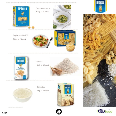 Orecchiatte No 91 500g X 24 pack Tagliatelle No 203 500g X 24 pack Farina 1KG X 10 pack Semolina 1kg X 10 pack Image for illustration only. 152