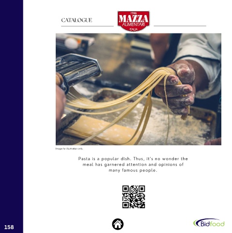 CATALOGUE Image for illustration only. Pasta is a popular dish. Thus, it’s no wonder the meal has garnered attention and opinions of many famous people. 158