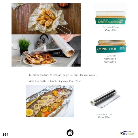 Parchment Paper 45cm x 100m Cling Film 45cm x 600m 45cm x 300m For baking tray liner, freezer patty paper, interleave for frozen meats. Wrap it up and keep it fresh, cling wrap, it's a refresh Aluminium Foil 45cm x 300m 164