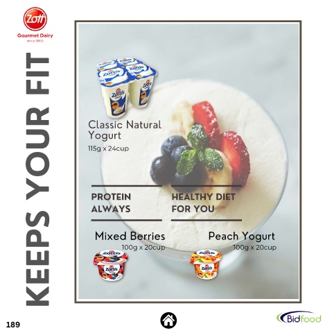 KEEPS YOUR FIT Classic Natural Yogurt 115g x 24cup PROTEIN HEALTHY DIET ALWAYS FOR YOU Mixed Berries Peach Yogurt 100g x 20cup 100g x 20cup 189