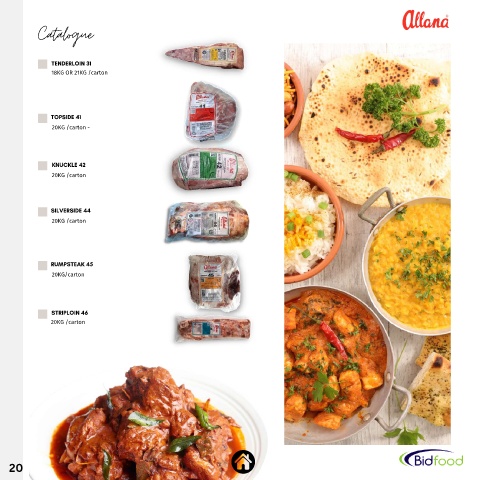 Catalogue TENDERLOIN 31 18KG OR 21KG /carton TOPSIDE 41 20KG /carton - KNUCKLE 42 20KG /carton SILVERSIDE 44 20KG /carton RUMPSTEAK 45 20KG/carton STRIPLOIN 46 20KG /carton 20