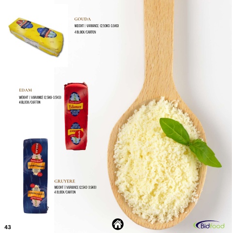 GOUDA Weight | Variance (2.50kg-3.5kg) 4 block/carton EDAM Weight | Variance (2.5kg-3.5kg) 4 block/carton GRUYERE Weight | Variance (2.5kg-3.5kg) 4 block/carton 43